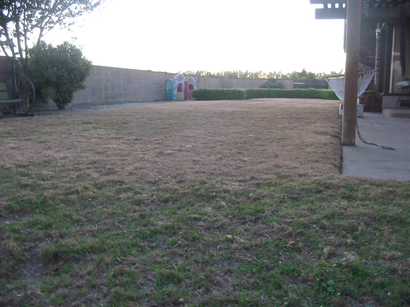 There is only one problem. The lawn. It is kikuya grass, which is particularly difficult to get rid of. Suggestions for removing it included taking out several inches of the backyard with a Bobcat, or covering the lawn with a layer of cardboard followed by a layer of compost and continuing to fight against the pernicious grass for years.