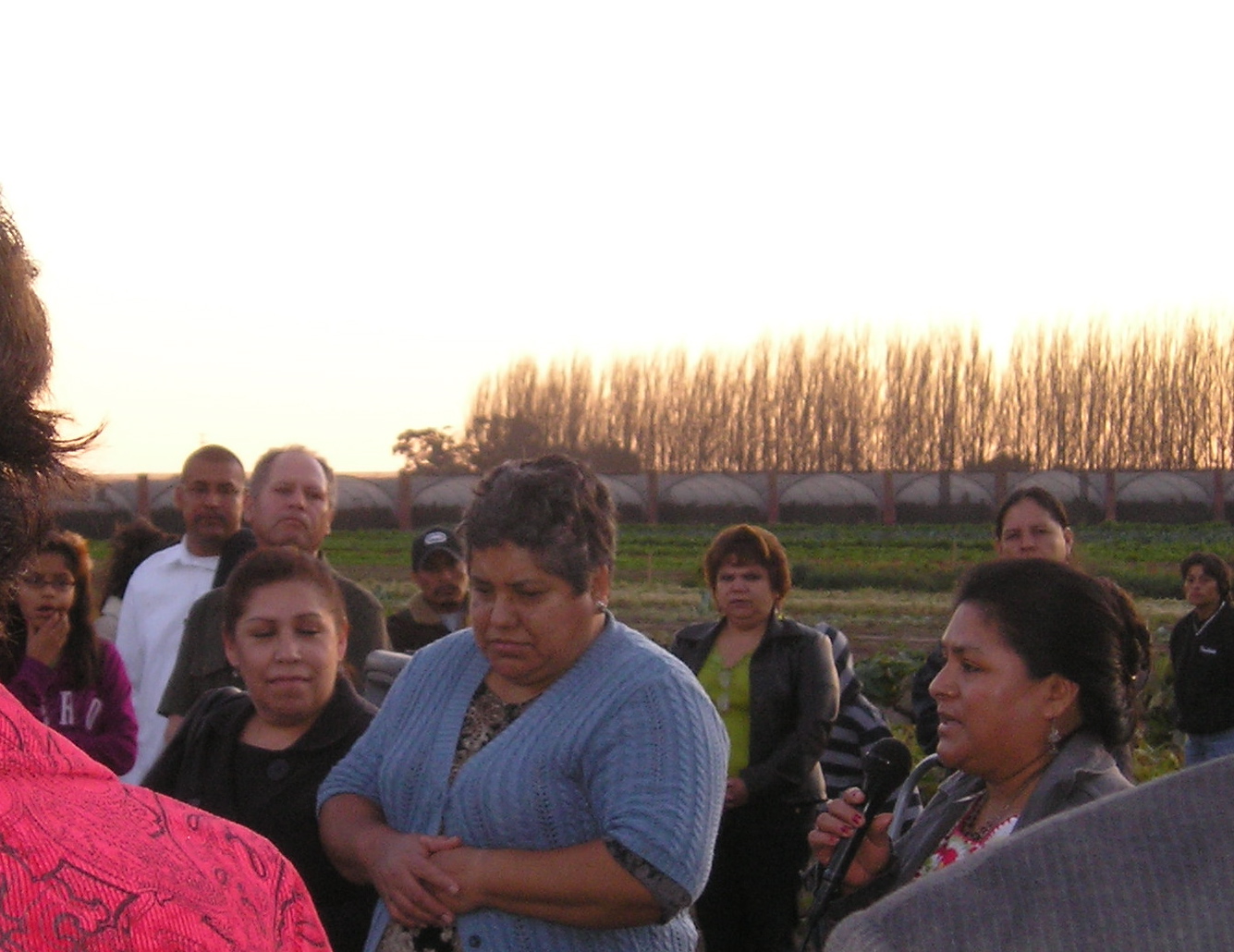 Since I didn’t blog last week, I thought I’d post a few pictures and highlights from an event this past Sunday that was hosted by Join the Farm! and the organizations that I work for in a side-internship, House Farm Workers (HFW), and Ventura County Clergy and Laity United for Economic Justice (VC CLUE). It was wonderful! About 125-150 farmworkers and other community members came out to the farm for an inter-faith Thanksgiving service out in our field. The purpose of the event was to give thanks for the land, the harvest, and the work of farmworkers in Ventura County, as well as to eat together as a community in a BIG OL’ potluck celebration. After the potluck in our backyard, we screened “A Home of Their Own,” a film from the perspective of the children of farmworkers on their experiences moving from sub-standard to affordable housing at Villa Cesar Chavez, a housing development (about 4 miles from our house) for farmworkers.